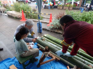 <緑のボランティアによる 竹工作体験コーナー>