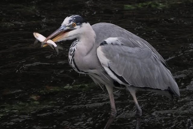 野川の瀬でじっと身構え、サッと魚を捉えては丸飲みしていました。