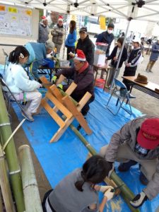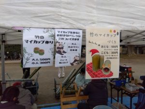 当日は緑のボランティアの方にもご協力をいただき、「竹のマイカップづくり」で竹切りやカップの加工の指導をしていただきました。