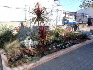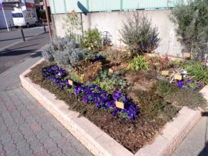 新川交番前、第一小学校の隣の、新川宿ふれあい通り花壇です。