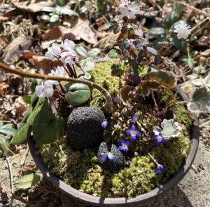 春の野草と樹木を使った草盆栽の寄せ植えを楽しみませんか。